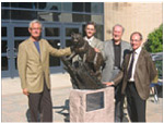 The Whitehead Foundation was pleased to participate in the opening of the new Sculpture Garden at Brandon University (August 2008) with the unveiling of our contribution, “The Lookout Bobcat”. The sculpture was created by Manitoba sculptor Peter Sawatzky, and is located at the entrance to the Library Building. The Foundation has an ongoing interest in the continued growth of the sculpture garden. Pictured in the photo are (L-R) Murray Whitehead, General Manager of The Whitehead Foundation, Dr, Jeff Bales, President of The Brandon University Foundation, Dr. Lou Visentin, Past President of Brandon University, and Peter Sawatzky, sculptor.